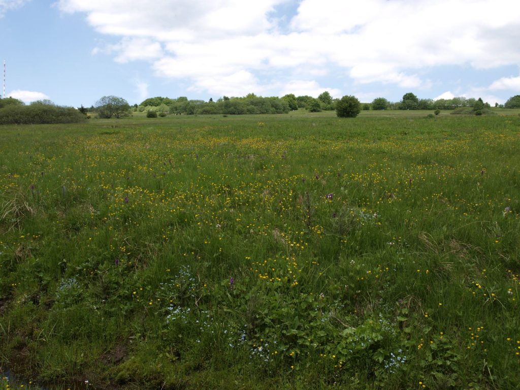 Die Hochrhön ist bekannt und beliebt für ihre vielfältigen bunt blühenden Bergwiesen. Die großflächigen Wiesen der Offenlandschaft der Rhön sind beeindruckend. Sehr kleinräumig wechselnde Verhältnisse auf nassen oder trockenen, nährstoffreichen oder extrem mageren Standorten sorgen für einen hohen Artenreichtum. Damit geht ein beeindruckendes Farbspiel im Verlauf der Blütezeit einher, denn in einigen Wiesen sind durchaus bis zu 80 verschiedene Pflanzen zu finden.