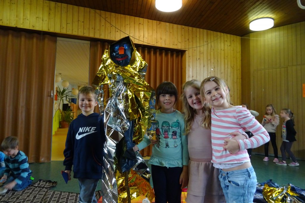 Home Aktuelles Vorschulkinder aus Dorfen basteln für den Rehkitzschutz 1 Wildscheuche