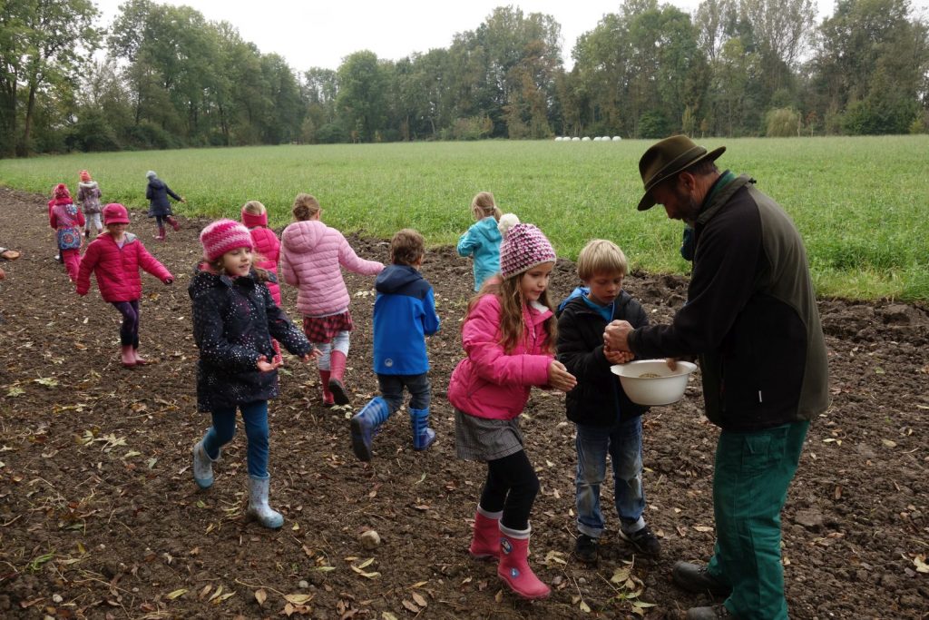 Von Georg Hans erhalten die Kinder das Saatgut…