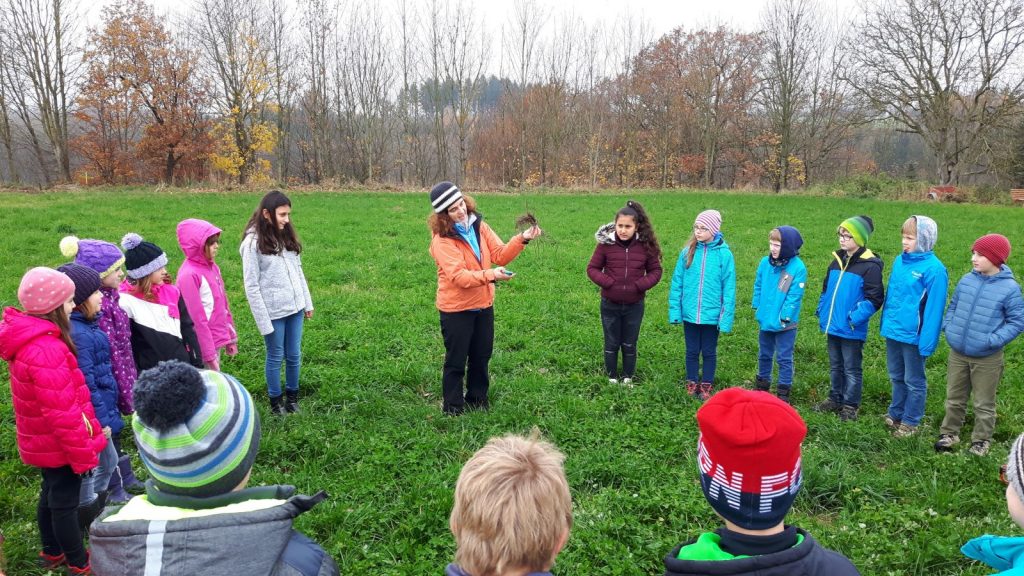 Patrizia Weindl erklärt, wie die Heckenpflanzen behandelt werden müssen, bevor sie in die Erde gebracht werden.