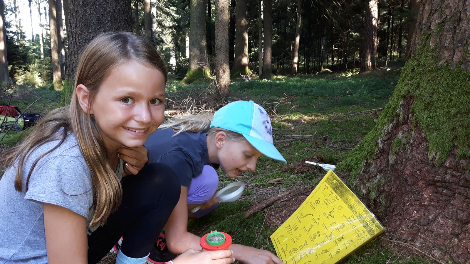Junge Waldforscher untersuchen den Waldboden nach Lebewesen